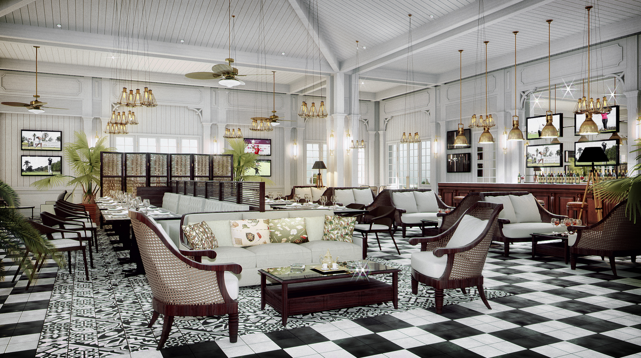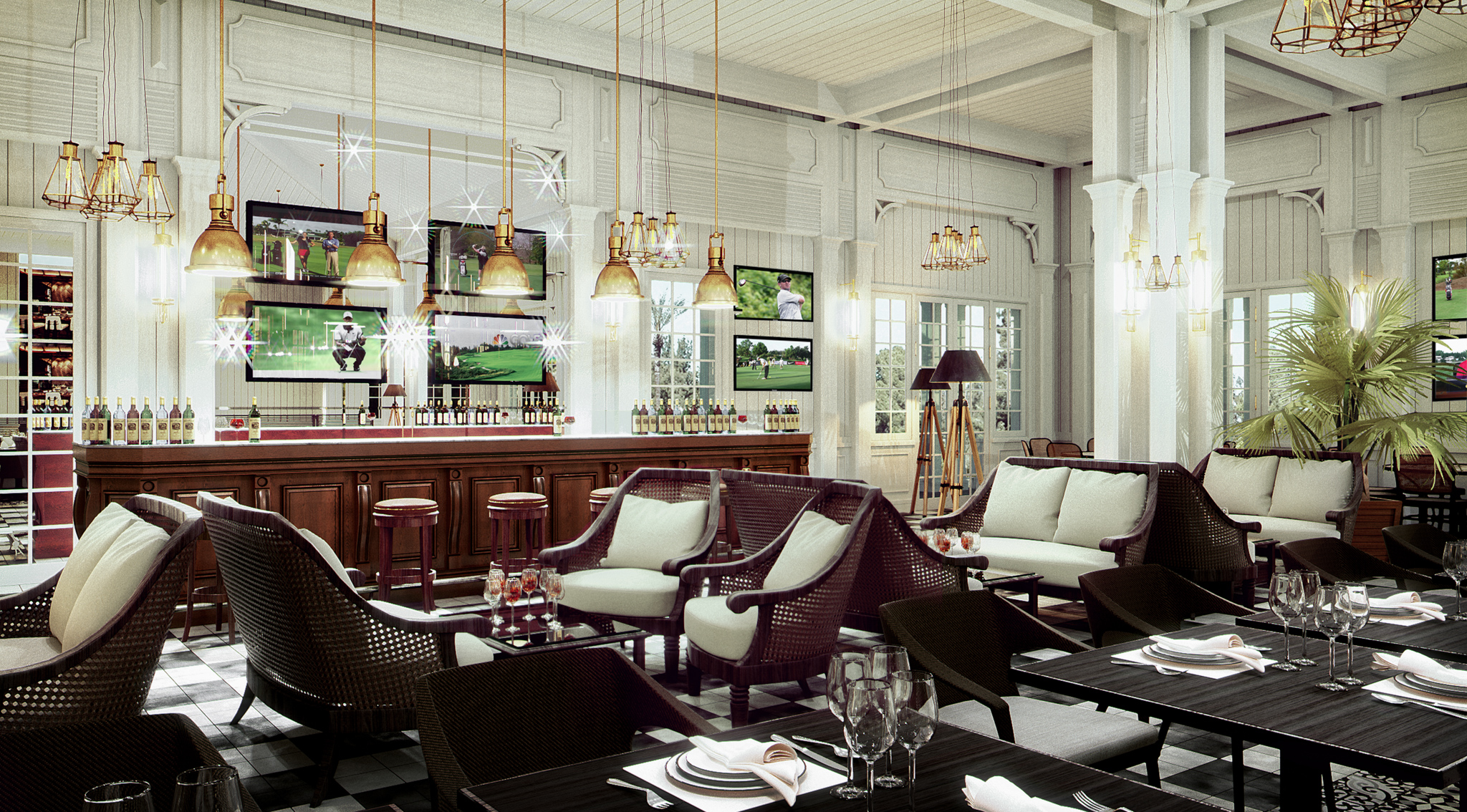 Este club de golf exclusivo fue un proyecto donde nos encargaron la fabricación del mobiliario de manera completa. Se utilizaron maderas nobles como el haya y metales como el latón envejecido.