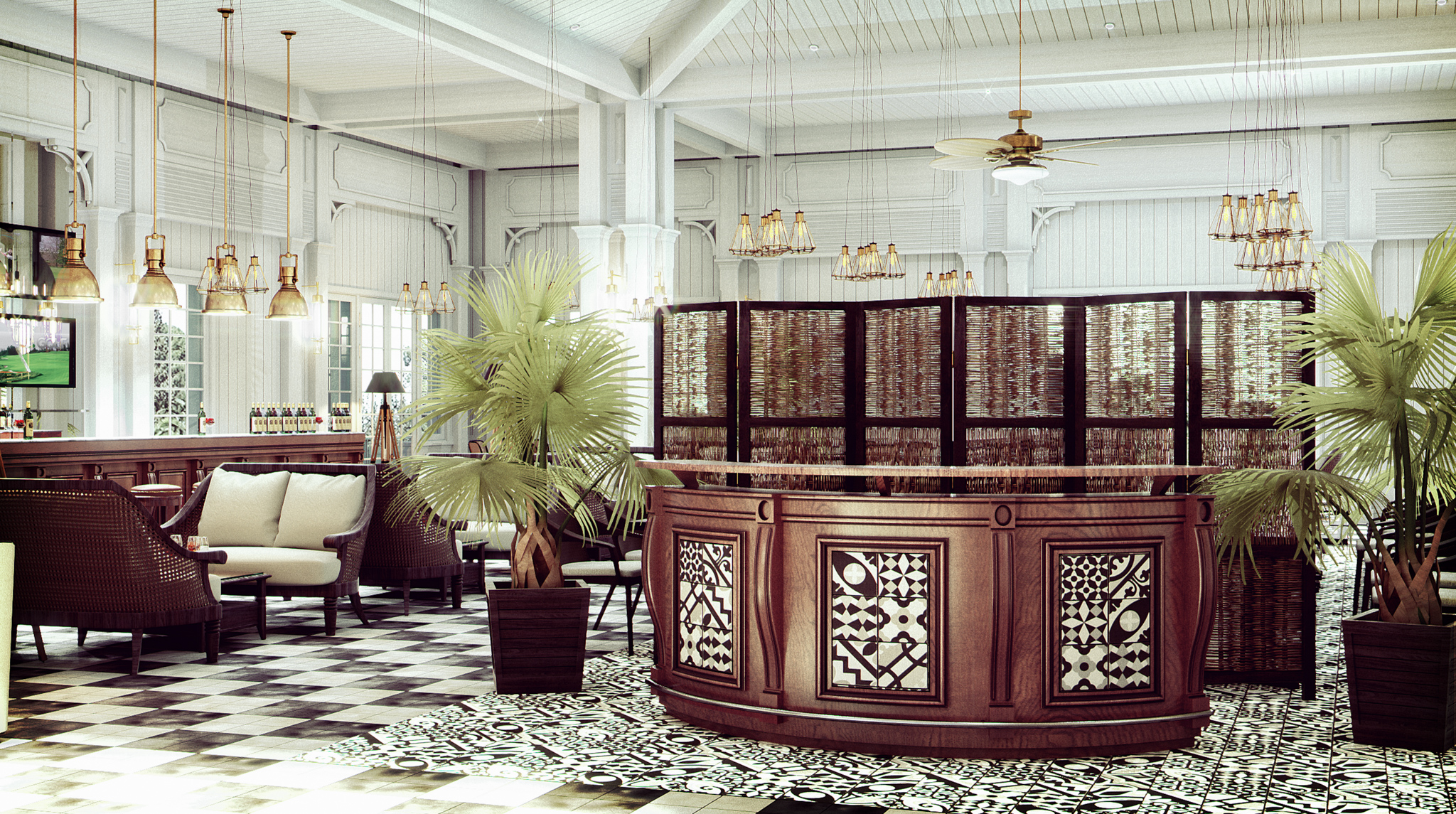 En combinación con la decoración colonial en tonos blancos otorga elegancia y calidez para ofrecer a los clientes una estancia propia del entorno.