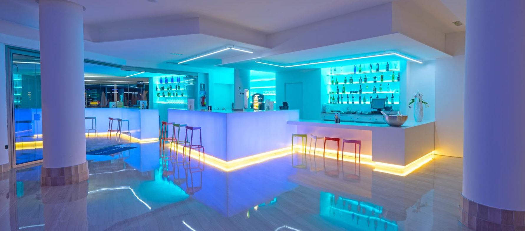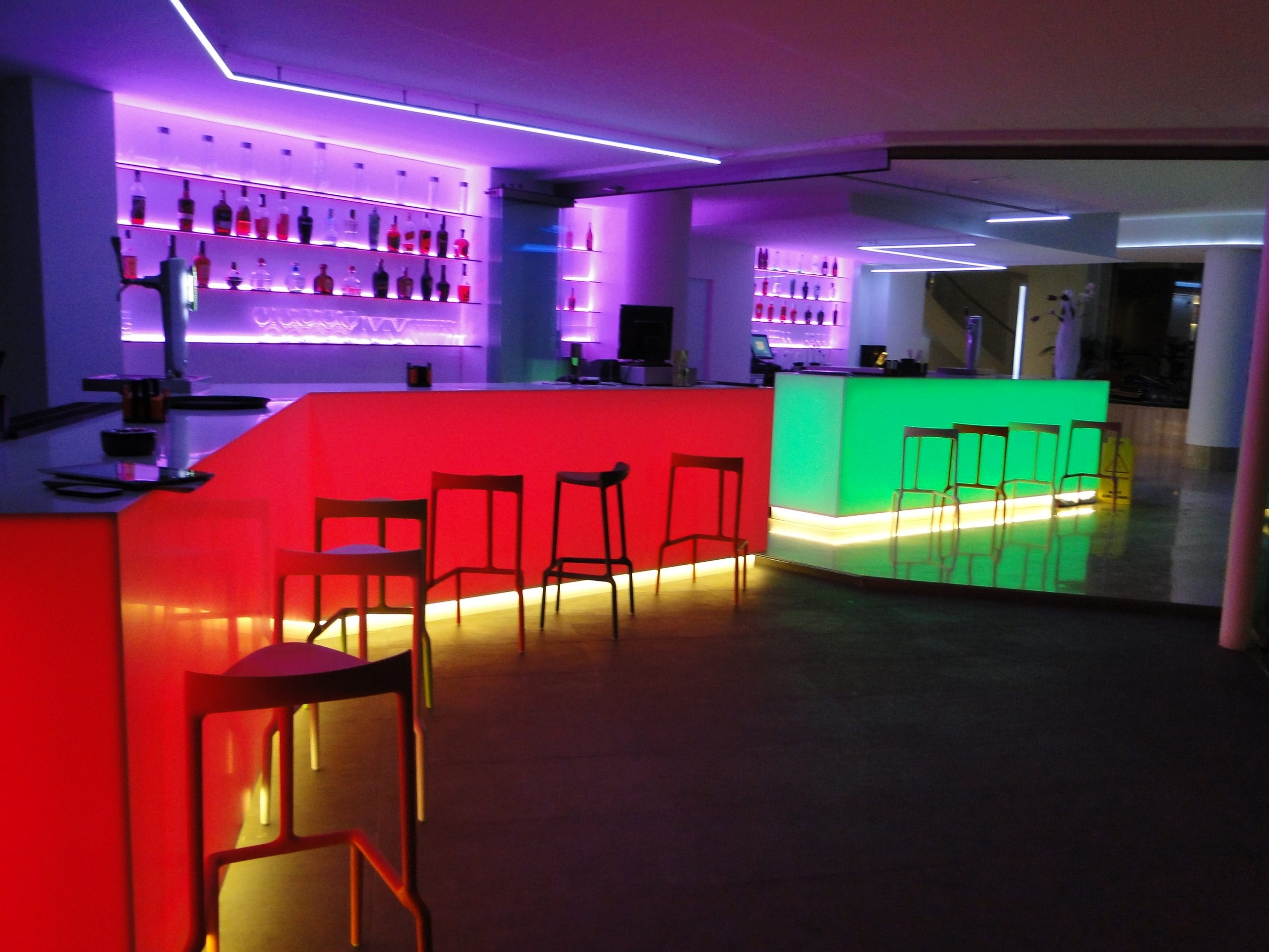 Se haría uso de ella tanto de manera diurna como nocturna, por lo que se instalaron una serie de led en la parte interna de la barra para que tuviera una iluminación de ambiente durante el ocio nocturno.